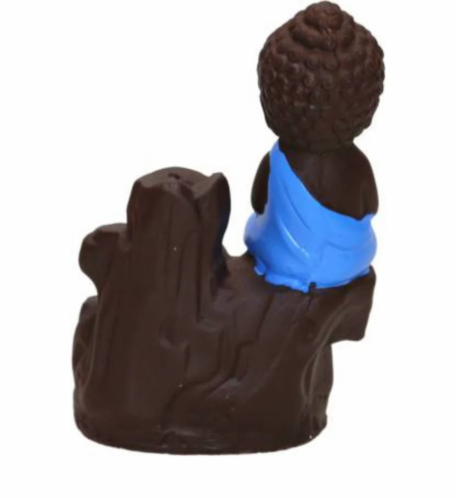 Buddha Backflow Smoke Fountain with Free Incense Cones – Resin Monk Idol for Home Décor & Gifting